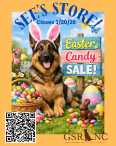 Help German Shepherds and get your holiday shopping done at the same time! GSRNC’s See’s Candies Holiday Store is open for business! For every purchase made, See’s will donate up to 50% back to GSRNC! That’s a delicious win-win! Better hurry, our store closes on 12/5/25.
